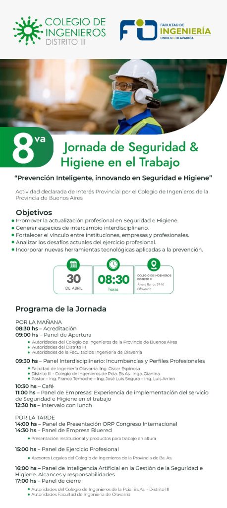 La actividad es organizada en conjunto con la Facultad de Ingeniería – UNICEN y ha sido declarada de Interés Provincial, destacando su relevancia en el fortalecimiento del conocimiento y la mejora continua en el ámbito de la seguridad y la higiene laboral.